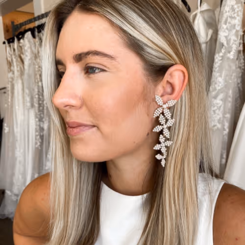 A.B. Ellie launched in 2010 by a team of two sisters and their mother. In 2024, they launched their newest line, Studio Bride. Studio Bride delivers that cool girl aesthic A.B. Ellie is known for, at a more accessible price point and styling. Think simple, timeless pieces that take you from the wedding day and beyond. Handmade in the USA.