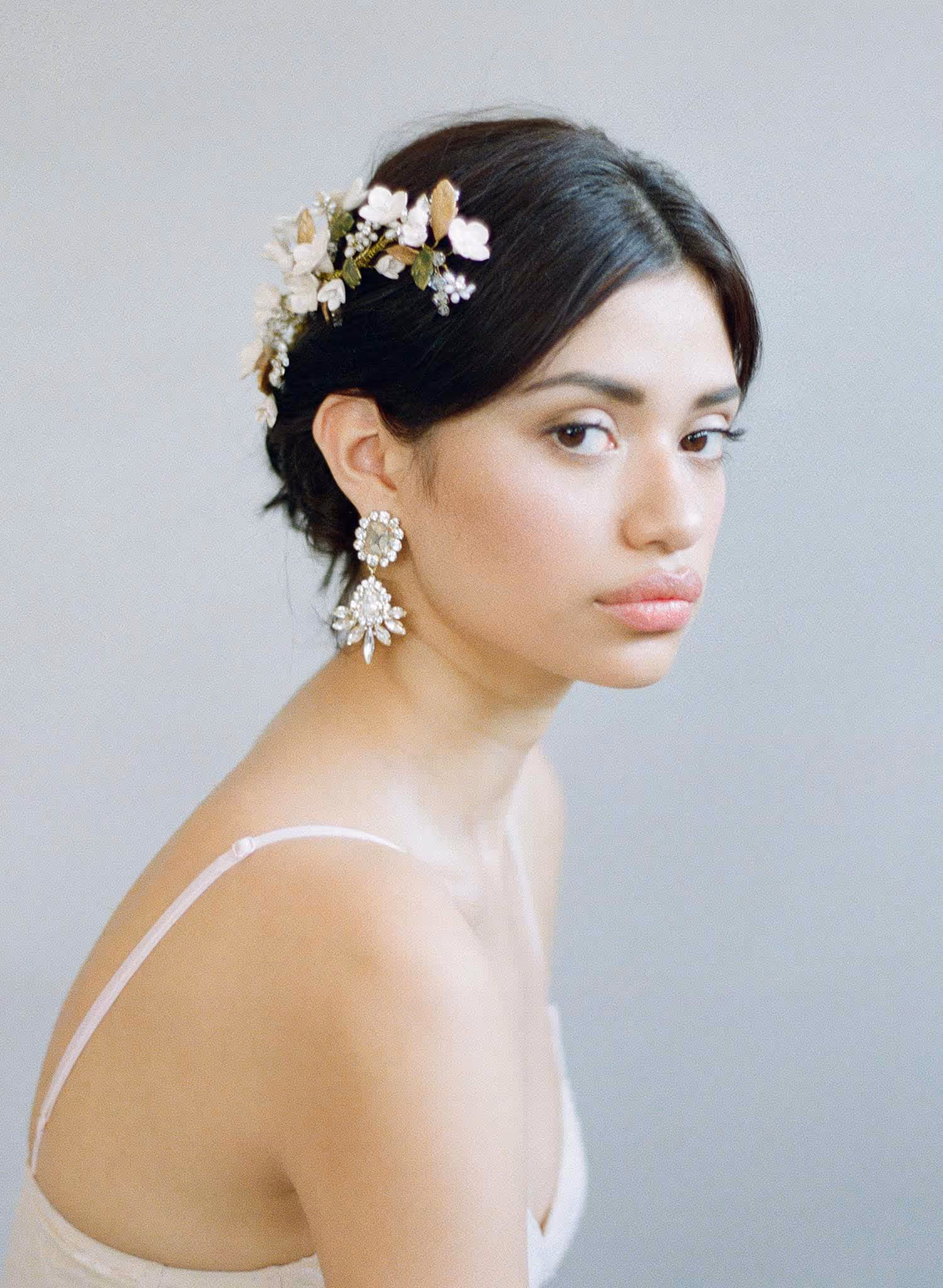 Founded by designer Myra Callan in 2008, Twigs & Honey uses the finest laces, silk floral accents, Swarovski crystals, and vintage pieces to create bohemian inspired bridal accessories. From headpieces to sashes, all Twigs & Honey pieces are hand-crafted in Oregon. Twigs & Honey pieces have been worn by Elle Fanning, Nicki Minaj, and seen on the Bachelorette franchise. Voted "Best Indie Designer" in 2014, Twigs & Honey accessories have quickly become a respected brand within the bridal industry.