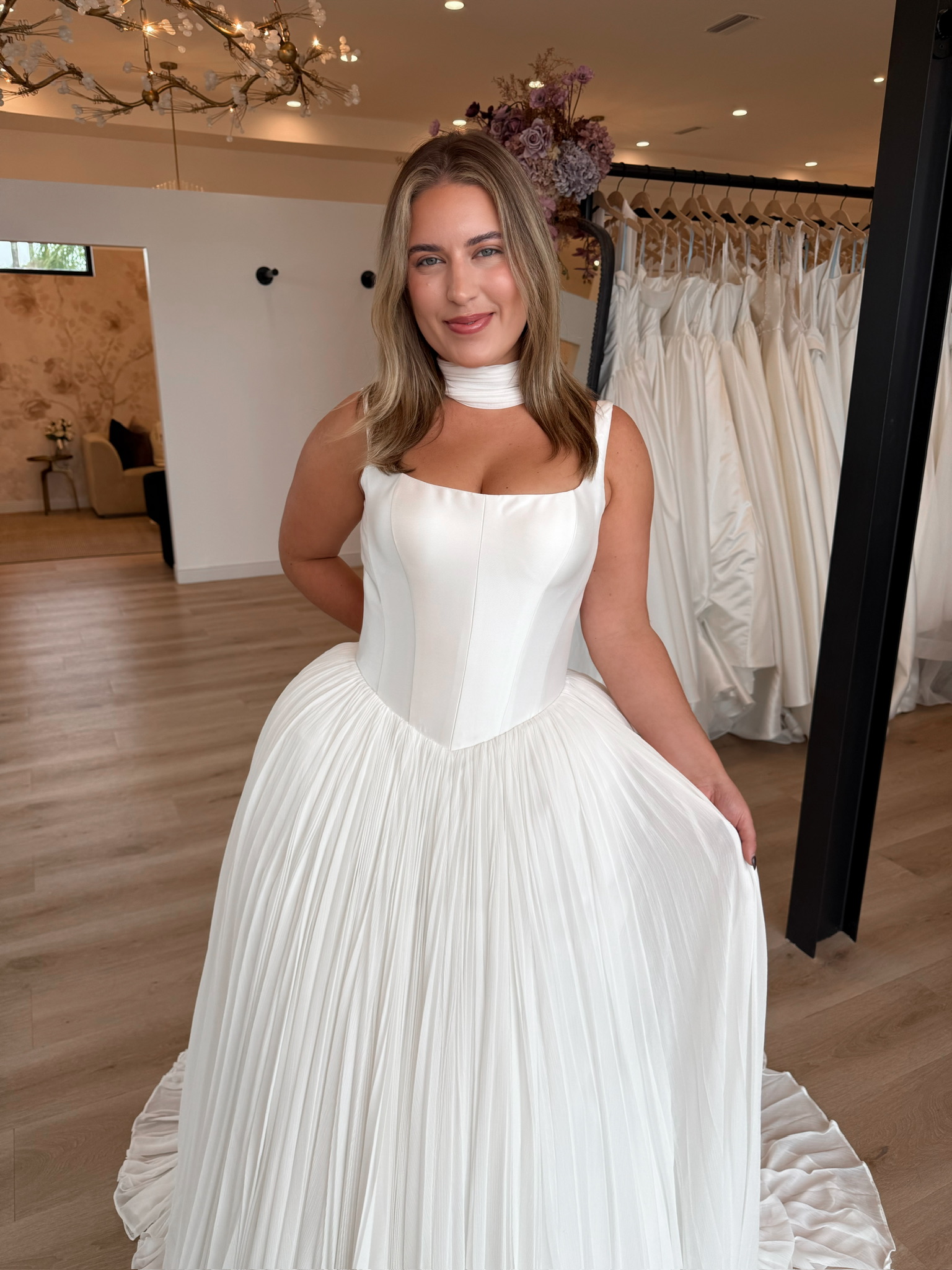 At Love, a Bridal Boutique, we offer a personalized bridal experience where you work one-on-one with one of our expert stylists. Our gowns are made to order, so during your appointment you will try on a variety of styles to find a dress that feels right and have your measurements taken to ensure you are getting the best fit. Bridal sizing can differ from street sizing. While online shopping is an option on some designer's websites, working with a bridal stylist is extremely important to ensure proper fit, expert guidance, and a seamless experience from start to finish. When you buy from a boutique you are not only supporting a local business, you have the support of that boutique from the moment you say yes to the dress until you say I DO!