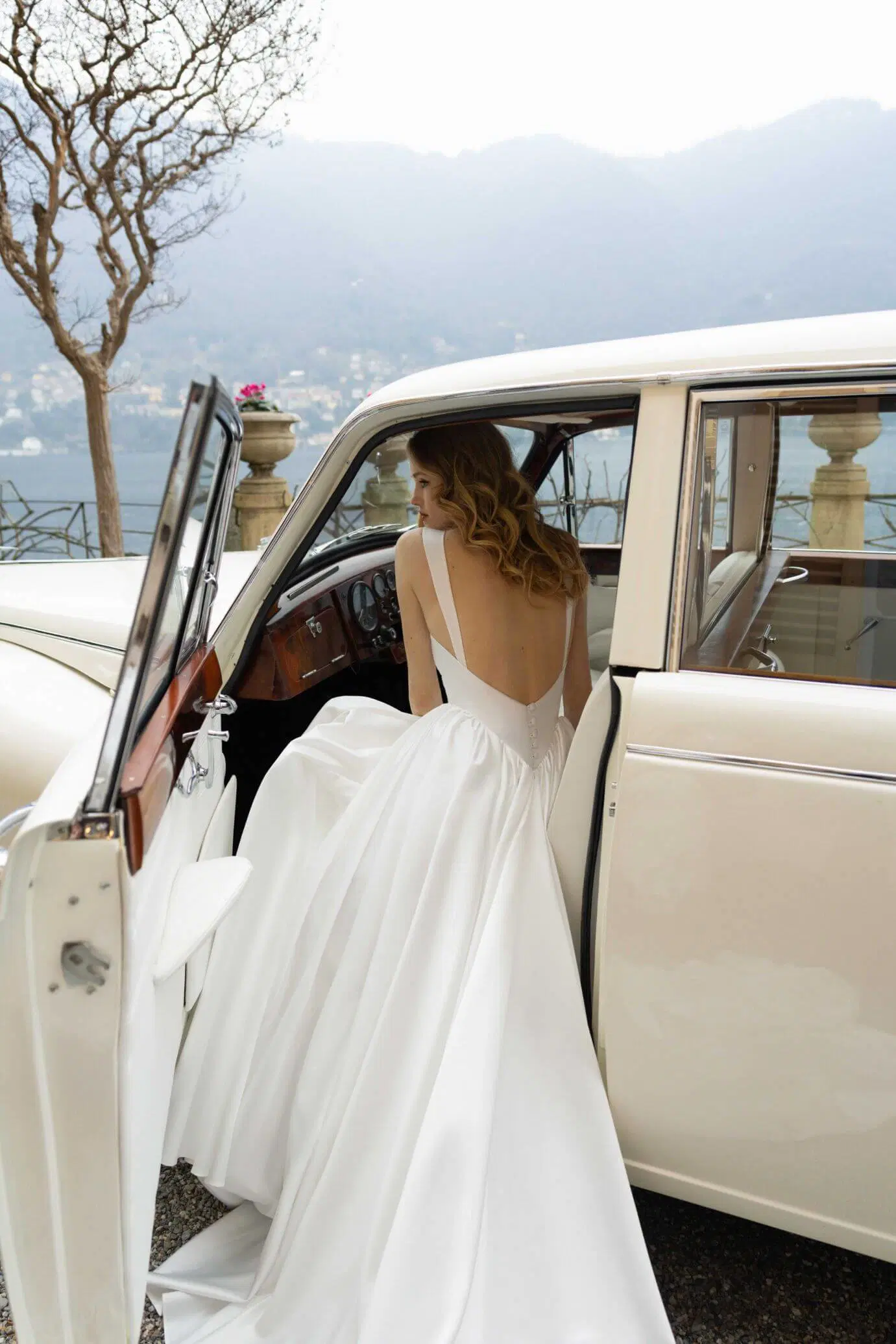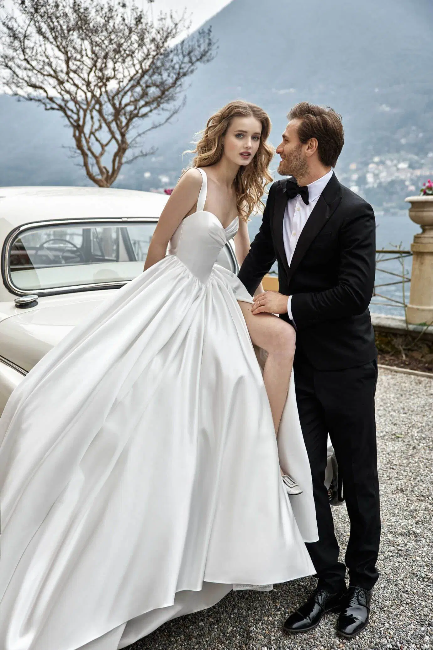 The ease of the strap and beauty of the bodice make the style effortlessly beautiful. Alessandra features a sweetheart neckline and stunning low back. This A-line gown is made for the modern and timeless bride.
