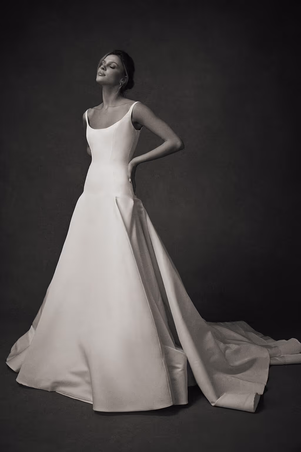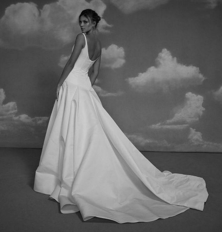 Gown No. 18 by Sept is a sleek satin faille drop-waist gown crafted from 100% silk. Featuring a classic scoop neckline, this effortlessly chic design is perfect for the cool bride who loves understated sophistication with a modern edge. Its clean lines and fluid silhouette make it a versatile choice for both timeless and contemporary bridal celebrations. A true work of art.